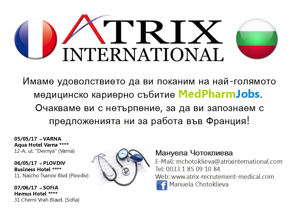Médecins grecs (et pas que !) soyez nombreux à venir rencontrer notre formidable équipe de recruteurs, Iasonas et Katerina, qui seront ravis de vous présenter ATRIX Médical.